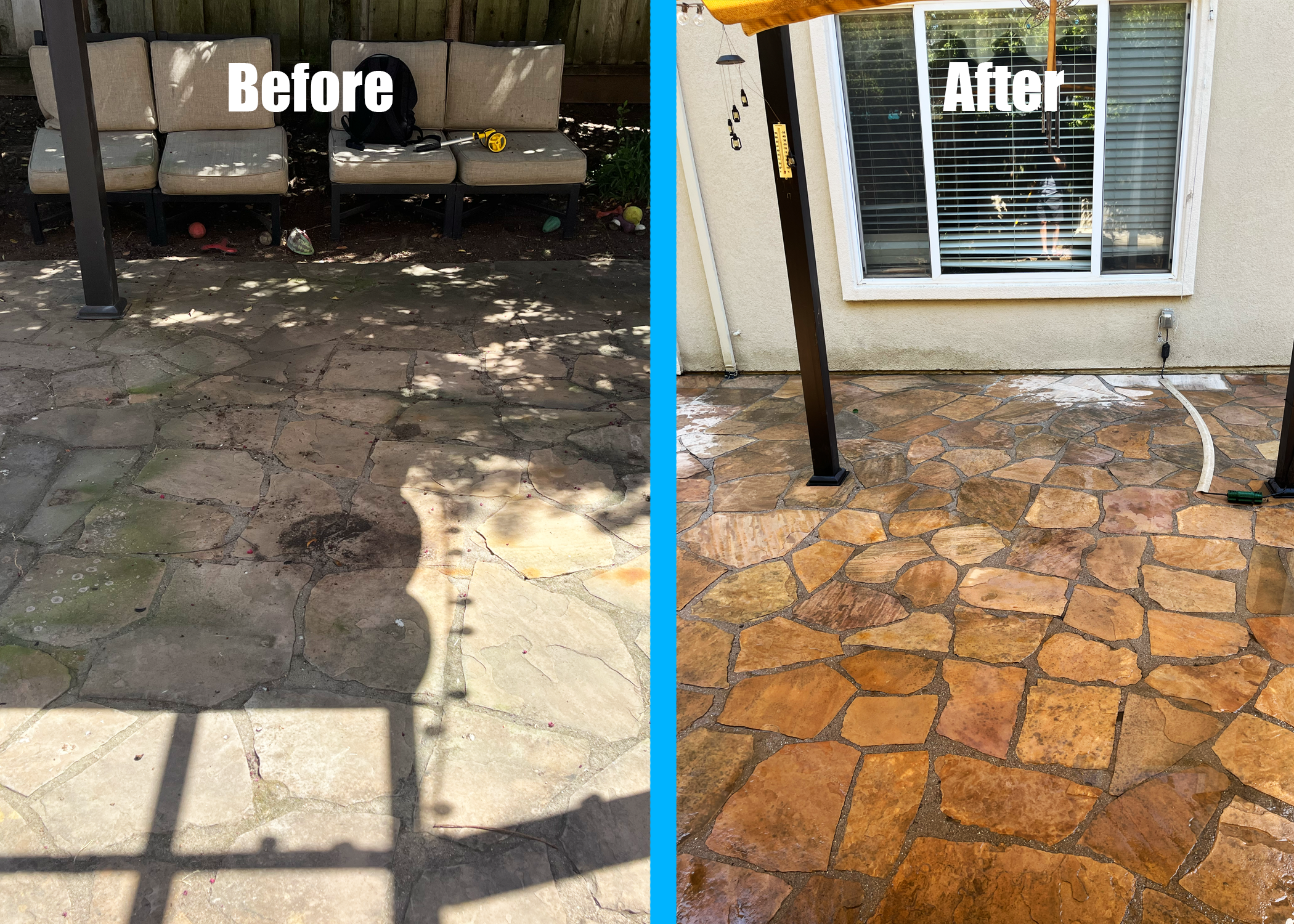 Cobblestone Pressure / Power Washing Job in San Jose South Bay Area showing a before and after result