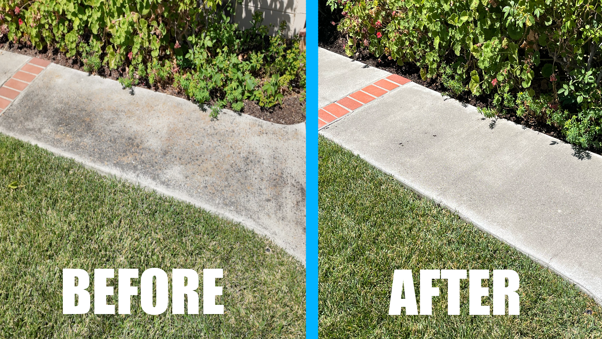 Concrete Pressure / Power Washing Job in Saratoga South Bay Area showing a before and after result